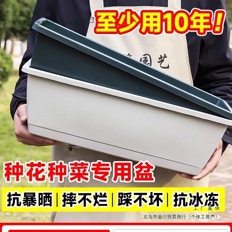 Pot Bunga Gantung Plastik Persegi Panjang Balkon Tanaman Sayuran Pot Panjang Kotak Tanaman Sayuran Tebal Bunga Sutra Bentuk Tahan Lama