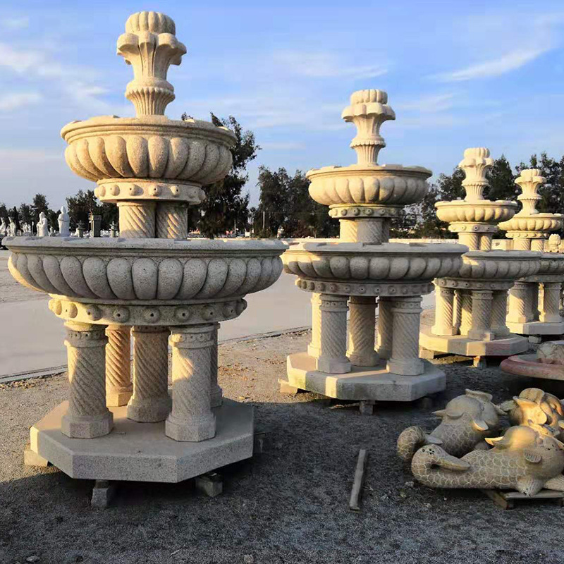 Diameter dua lapisan ukiran batu air mancur batu karat kuning patung Eropa air mancur kolam berjalan dekorasi air mancur batu