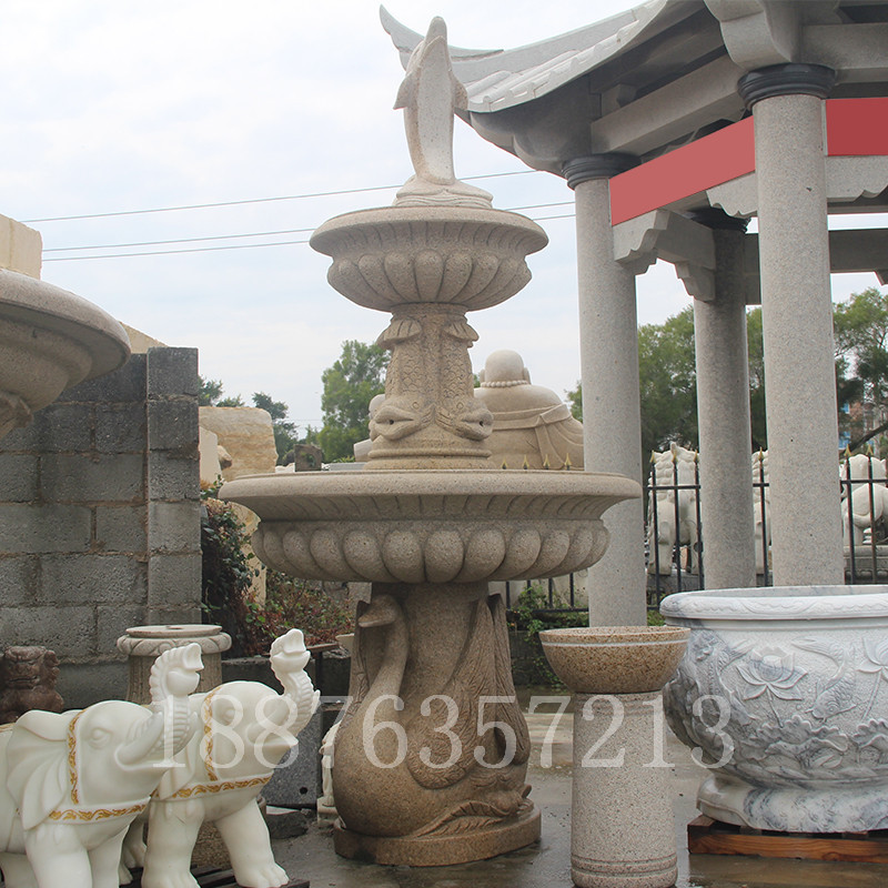 Air mancur batu karat kuning granit, air mancur lumba-lumba Eropa air mancur persegi, dekorasi air mancur lanskap taman