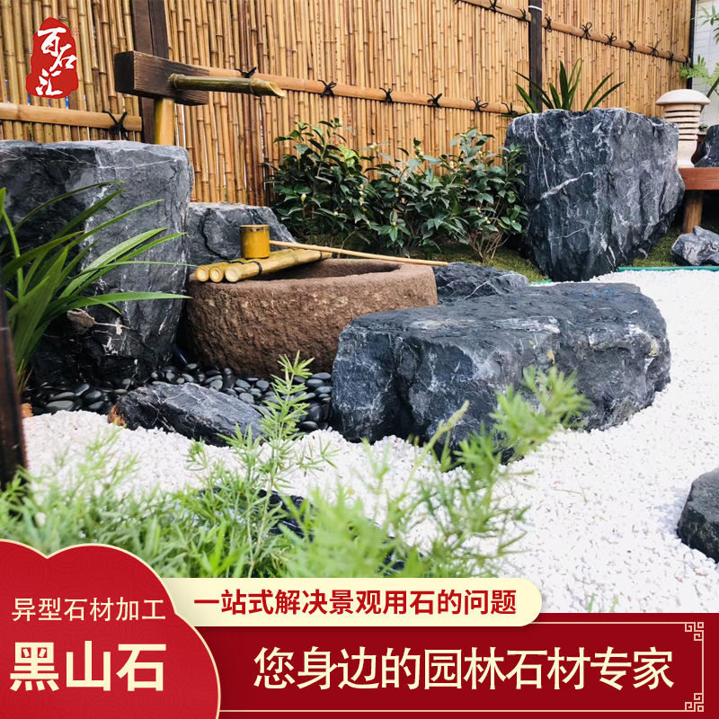 Tirai air dinding hitam batu gunung, tirai air mancur halaman lanskap ruang tamu gaya dekorasi modern mangkuk air batu gunung hitam dekorasi gaya China