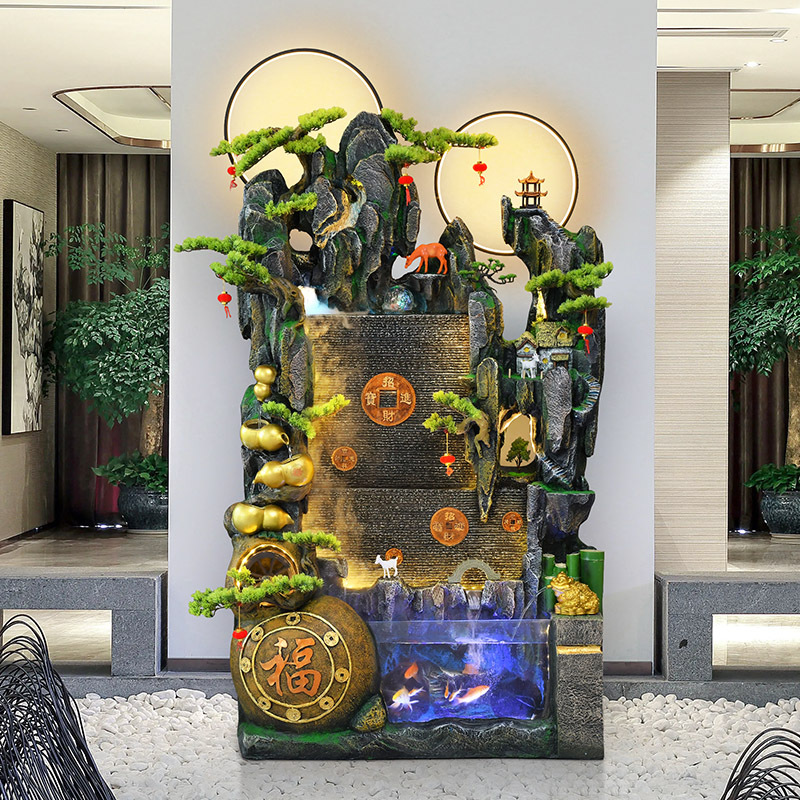 Rockery besar mengalir dekorasi air mancur tangki ikan Cina ruang tamu kantor tirai air layar dinding sirkulasi air dekorasi lanskap