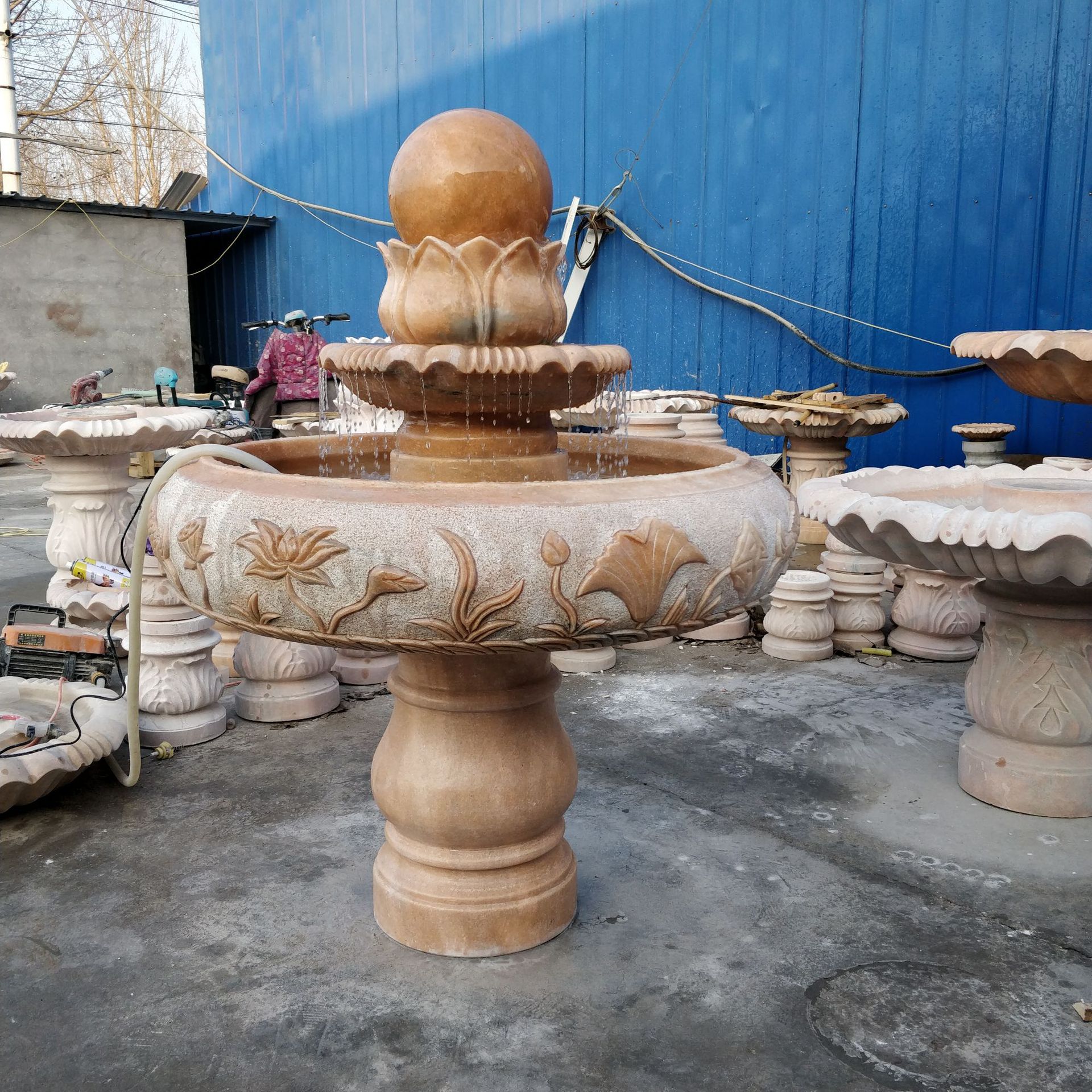Pabrik Langsung Ukiran Air Mancur Halaman Air Kustom Air Mancur Batu Portugal Krem