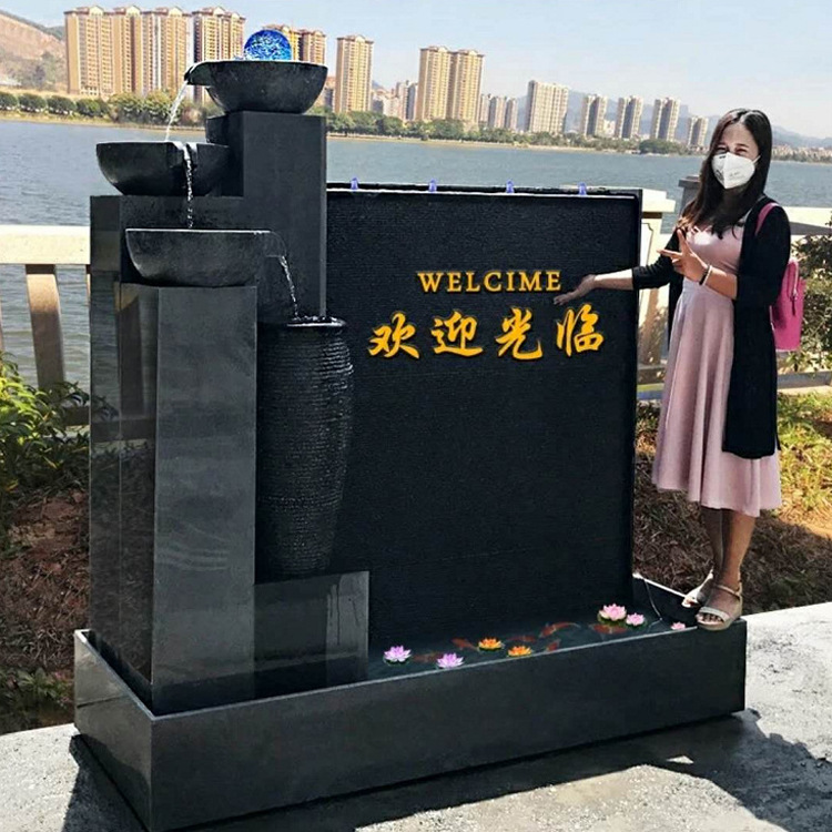 Tirai air besar mengalir dinding perusahaan dekorasi hotel pemandangan air mancur air mancur batu kolam ikan kerajinan ukir batu