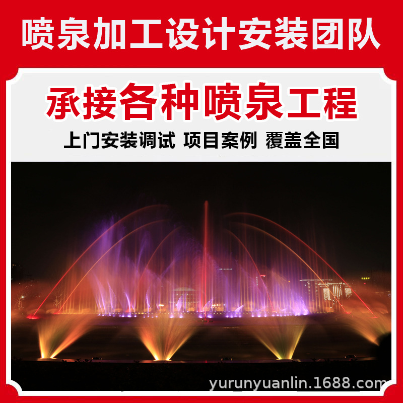 Proyek air mancur musik skala besar di luar ruangan, air mancur darat kering di area pemandangan danau buatan, air mancur mengambang, air mancur interaktif yang dapat diprogram dan melompat