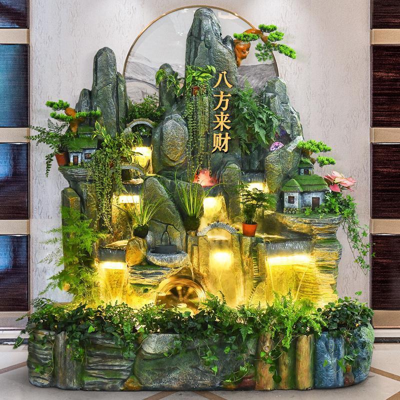 Air mancur tanaman besar, dekorasi ruang tamu taman keberuntungan roda feng shui kolam ikan pemandangan air dalam ruangan