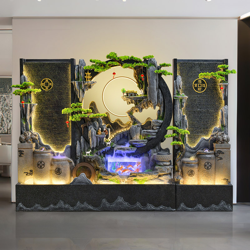 Dekorasi kantor air mengalir batu karang luar ruangan, Dekorasi Keberuntungan lantai ruang tamu bola feng shui air mancur
