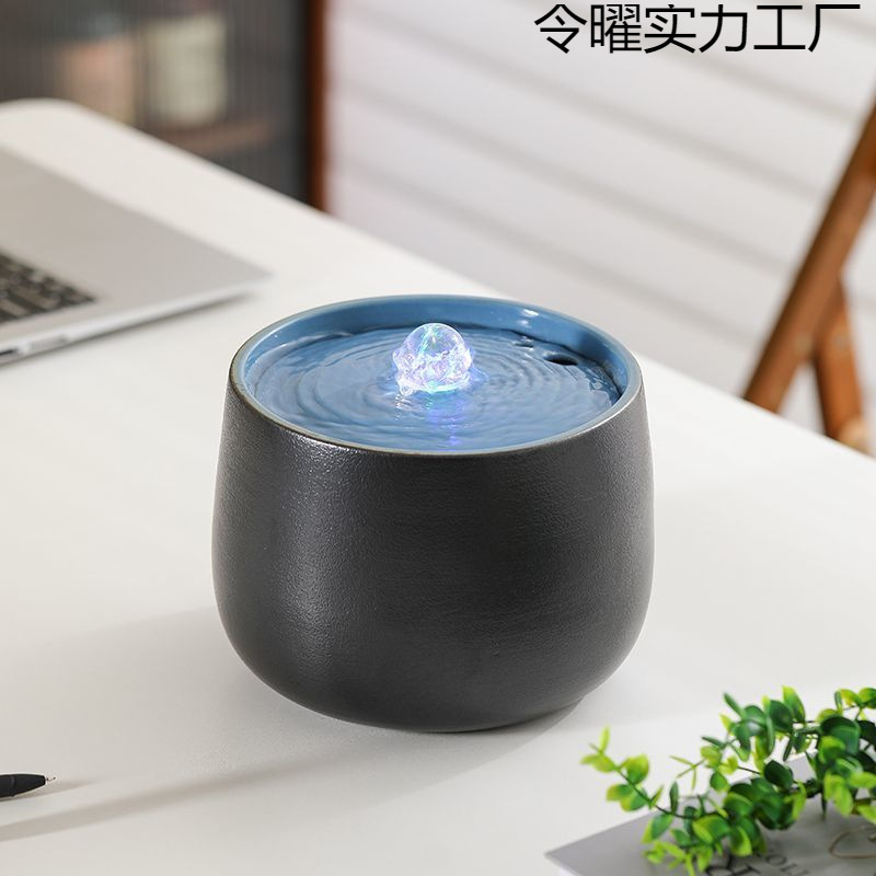 Ornamen air mengalir dari keramik untuk meja, air mancur penarik kekayaan, dekorasi ruang teh bergaya Zen, fitur air untuk sirkulasi dan pelembapan, ornamen kantor.