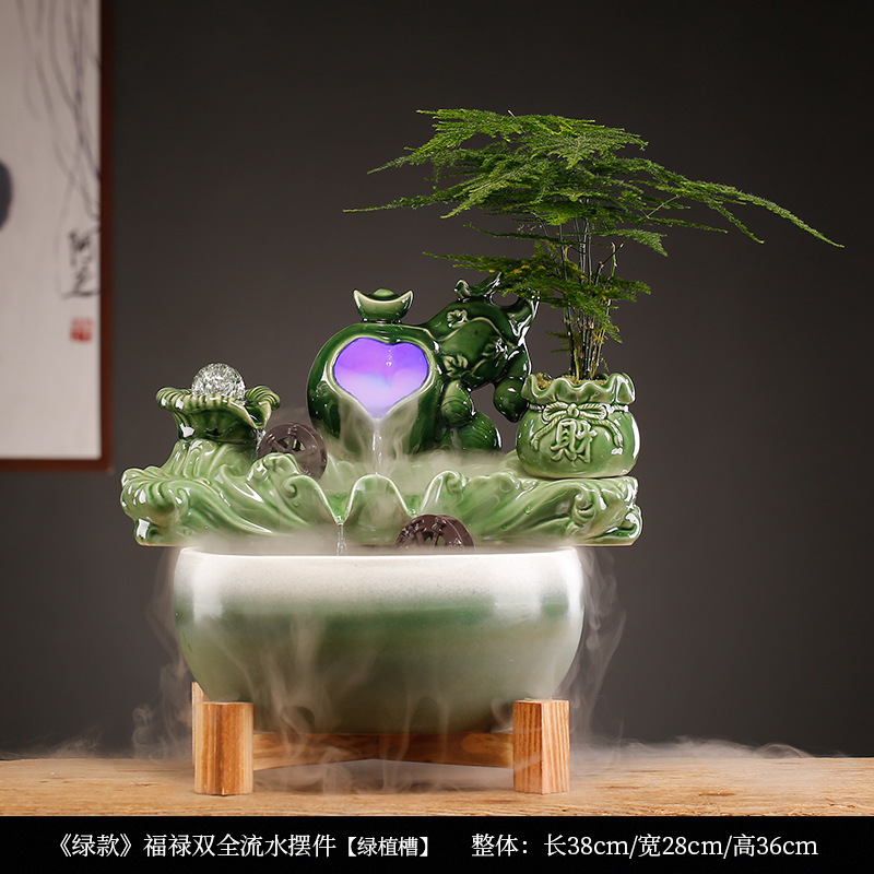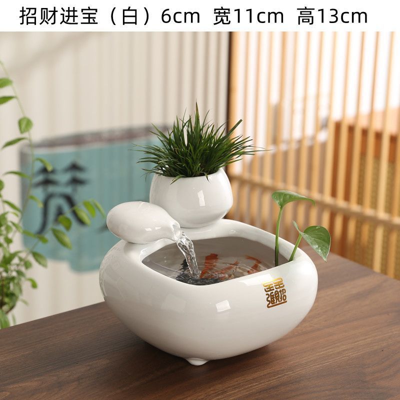 Air mancur keramik dengan air mengalir untuk menarik kekayaan, cocok untuk meja kantor dan meja teh, fitur air bergaya Cina untuk menarik kemakmuran dan merayakan pembukaan bisnis.