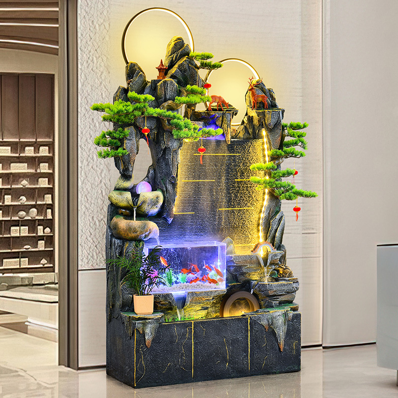 Rockery sirkulasi air mancur kolam ikan Beruntung tangki ikan Dekorasi lantai ruang tamu kantor membuka tirai air dinding lanskap dekorasi