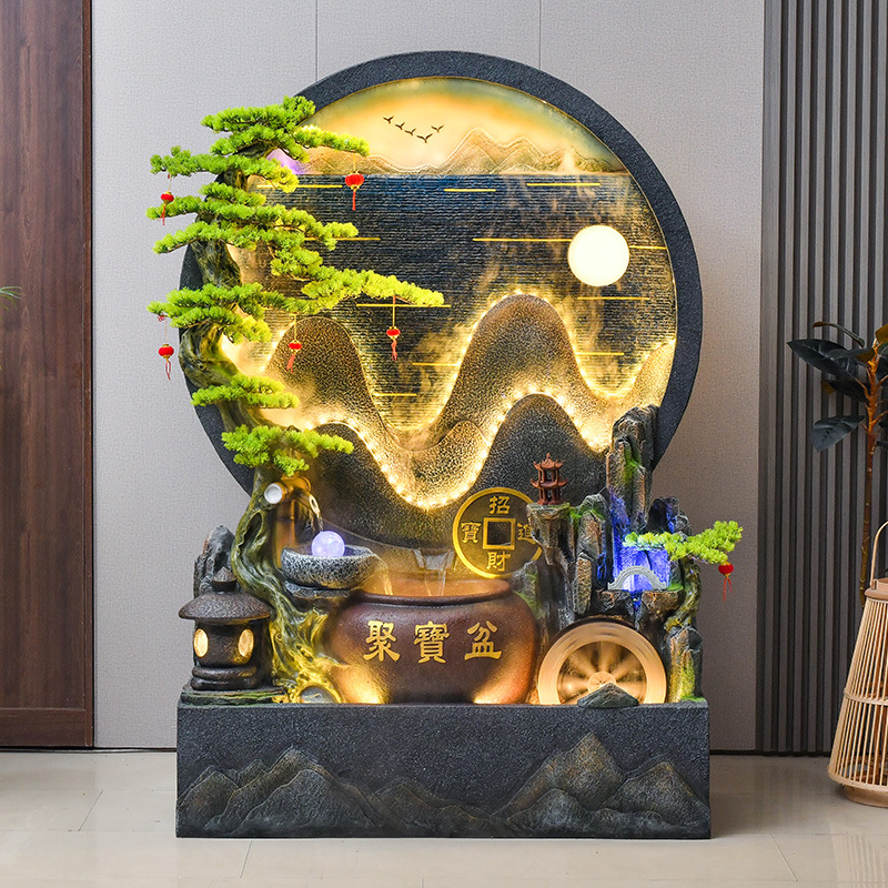 Dekorasi aliran air yang mengalir, sirkulasi air, keberuntungan, meja ruang tamu, tangki ikan, dekorasi pintu masuk kantor, hadiah pembukaan meja depan