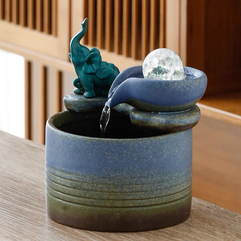 Dekorasi air keberuntungan gaya Tiongkok, dekorasi kecil keramik meja tamu meja teh dekorasi kantor lanskap sirkulasi air
