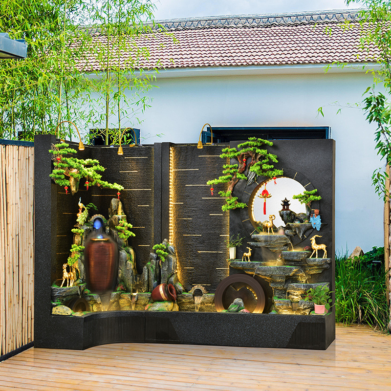 Tirai air dekorasi sirkulasi air, tirai air layar berongga partisi roda feng shui, tata letak dinding luar ruangan taman, lanskap kolam ikan