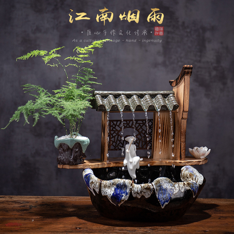 Ornamen sirkulasi air keramik sederhana, kantor ruang tamu desktop air mancur ZEN lanskap mikro aksesori rumah tangki ikan