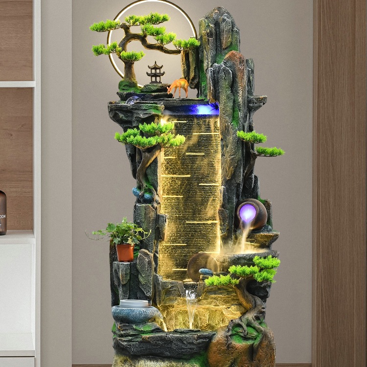Dekorasi air mancur gaya Tiongkok, dekorasi kreatif ruang tamu kantor lantai lanskap air dekorasi kabinet TV dalam ruangan