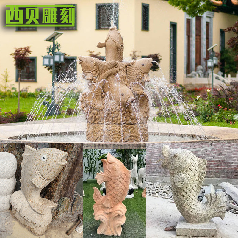 Produsen taman air mancur Hotel lanskap halaman luar ruangan marmer menerima semua jenis kustomisasi ikan air mancur ukiran batu