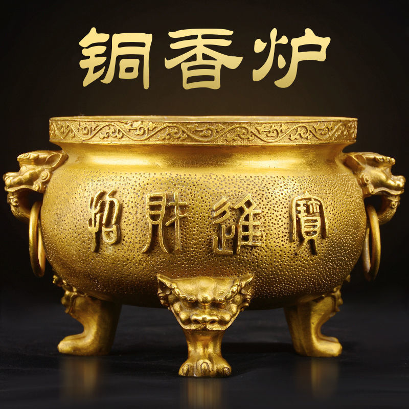 Pembakar dupa tembaga murni, pembakar dupa pembakar dupa ke dalam ruangan untuk rumah, pembakar dupa kaki tiga ekstra besar