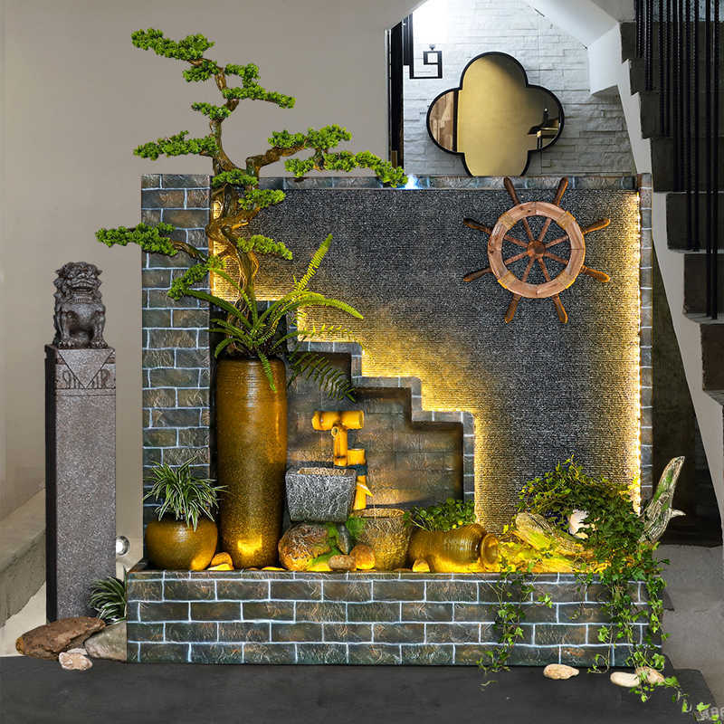 Dekorasi air batu karang tangki ikan tirai air keberuntungan dinding ruang tamu halaman balkon feng shui dekorasi dinding air grosir