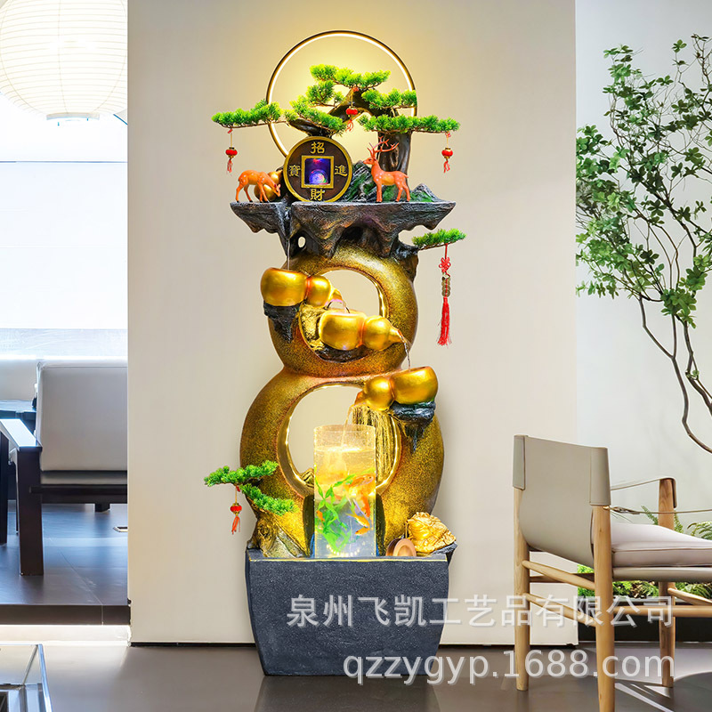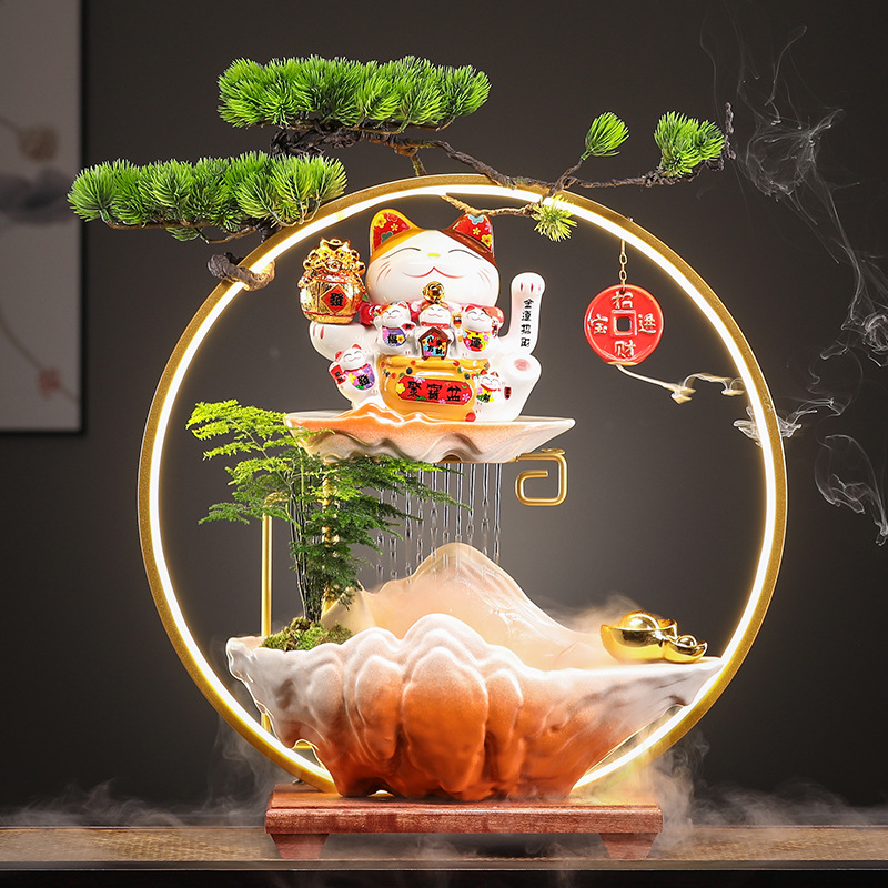 Lucky Dekorasi air mengalir gaya Tiongkok, hadiah pembukaan kreatif desktop rumah kantor ruang tamu sirkulasi air Guangjin sumber kekayaan