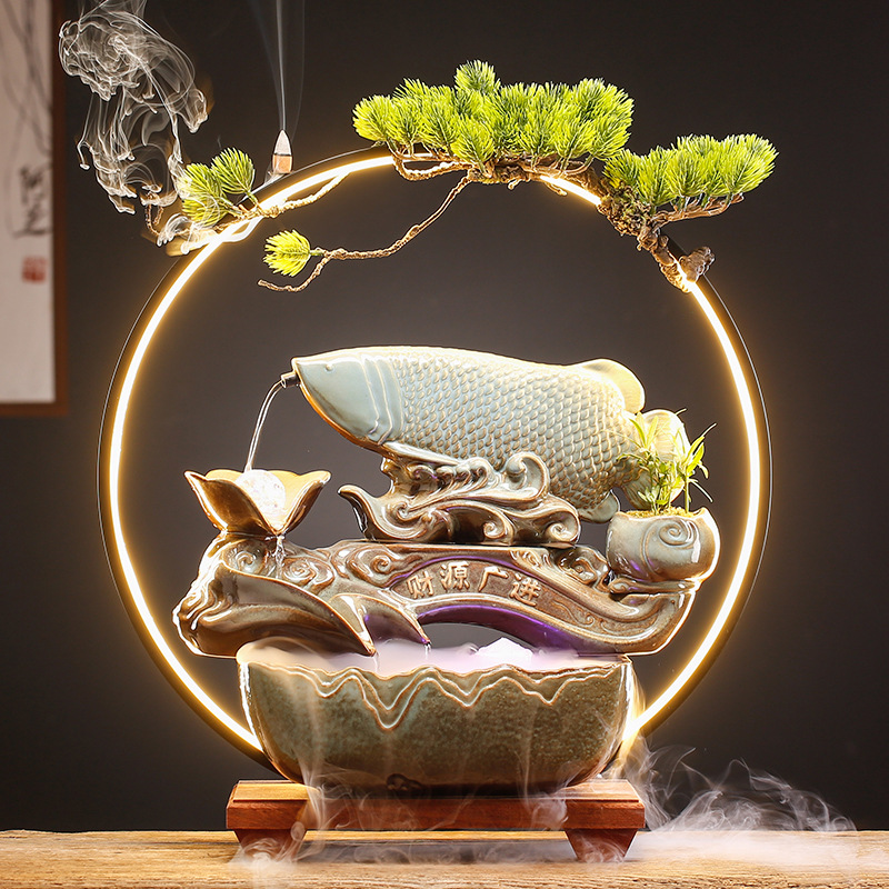 Dekorasi Keberuntungan aliran air, dekorasi sirkulasi air pemandangan ikan keberuntungan dekorasi ruang tamu desktop rumah baru hadiah pindah rumah