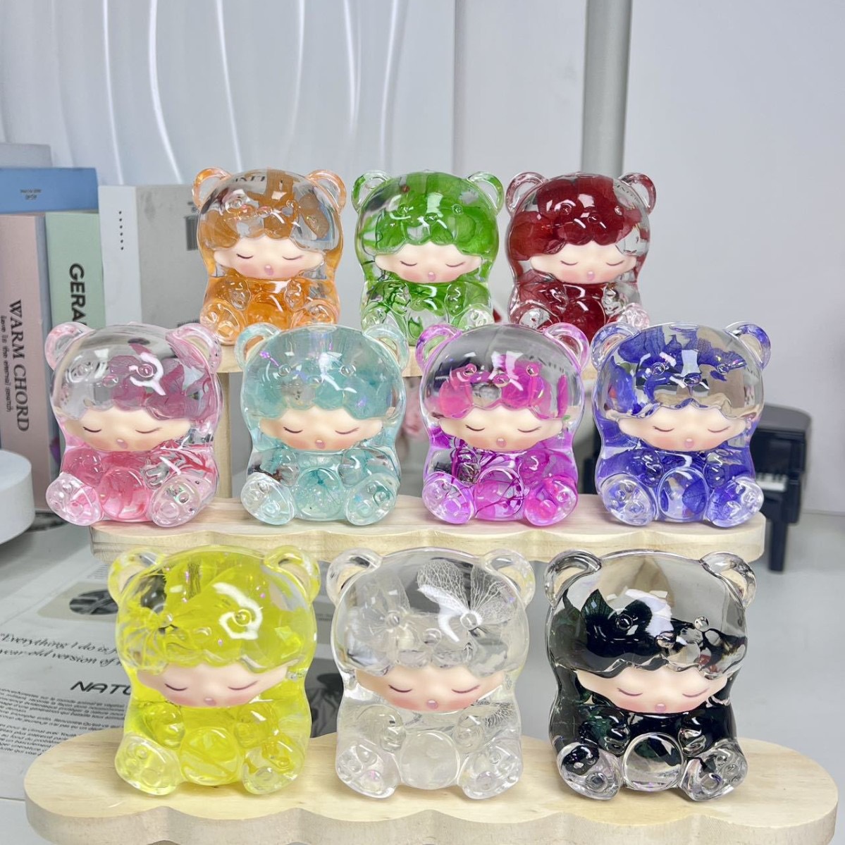 Dekorasi Pasir Mengalir Yunmeng Model Baru Bunga Kering Besar Raksasa Yunmeng Beruang Kecil Macaron Ornamen Desktop Tiga Dimensi Grosir