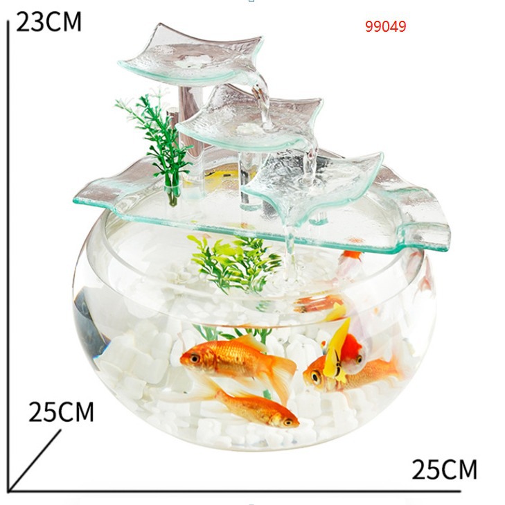 Mangkuk ikan mas, kaca kecil kreatif air mengalir ruang tamu desktop putaran lanskap dekorasi mini hadiah pindah rumah