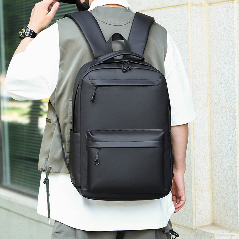 Tas ransel kulit PU pria, tas sekolah pelajar langsung pabrik, tas komputer bisnis kapasitas besar, sederhana, kasual, kulit PU baru