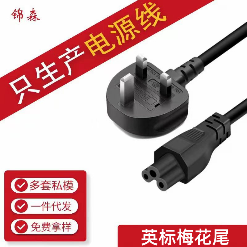 Kabel Daya standar Inggris tiga-steker ekor plum tembaga murni tiga-lubang kabel daya notebook Hong Kong
