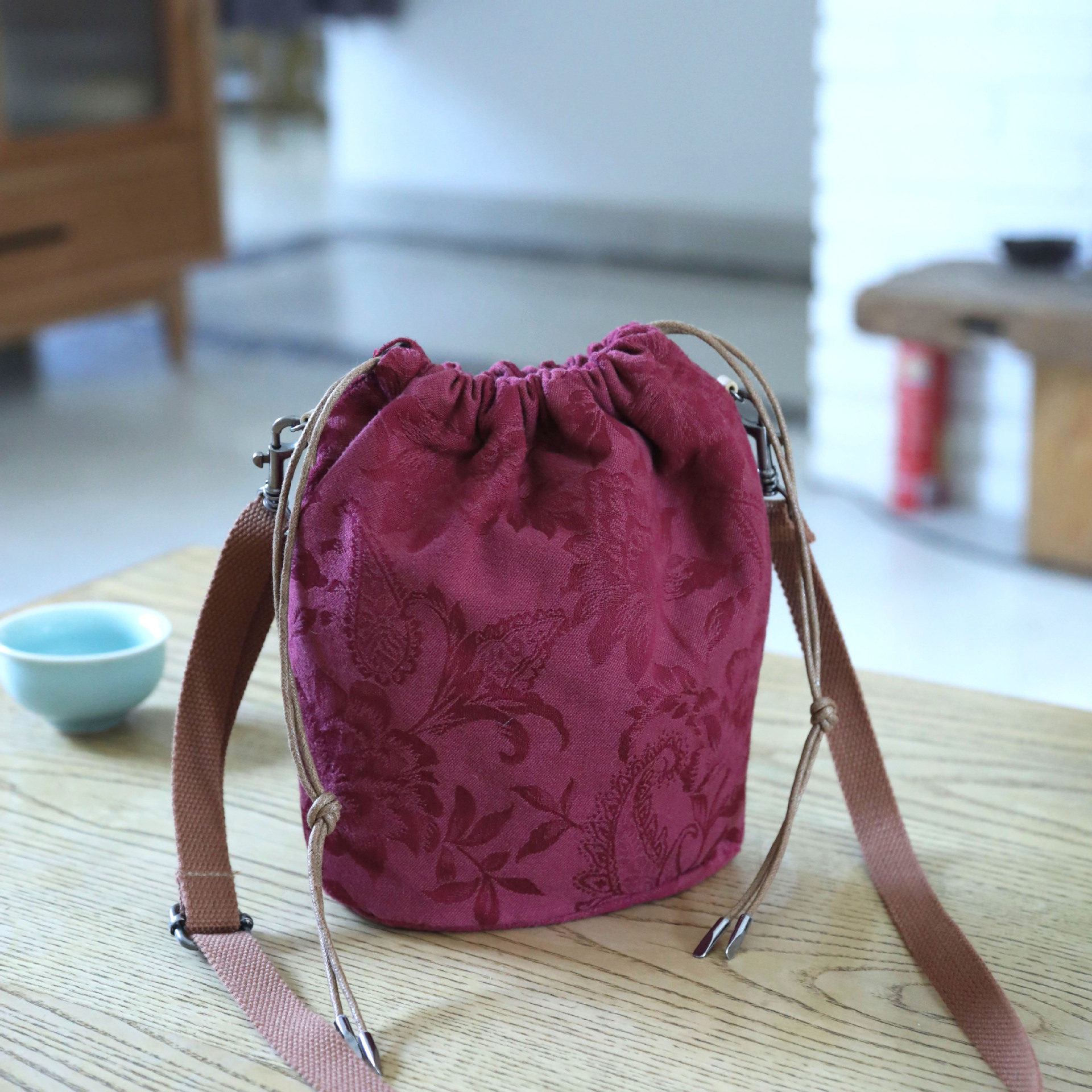 Tas bahu tali selempang serbaguna, tas komputer tali bahu lebar, tas kamera speaker dengan Aksesori tali cangkir air warna solid