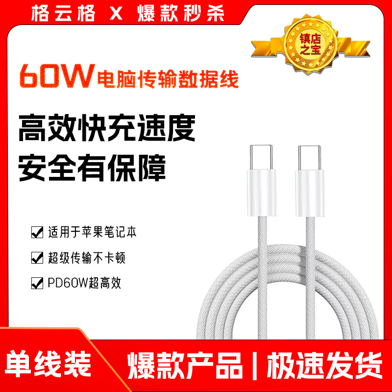 Double type-c benang anyaman 60w super cepat untuk Apple PC/tablet multi-perangkat