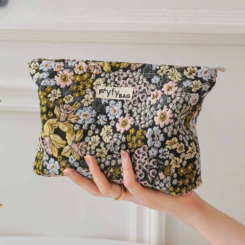 Tas Kosmetik Bunga Hitam Kecil Elegan Lintas Batas Tas Penyimpanan Produk Perawatan Kulit Portabel Tas Cuci Perjalanan Luar Tas Dalaman