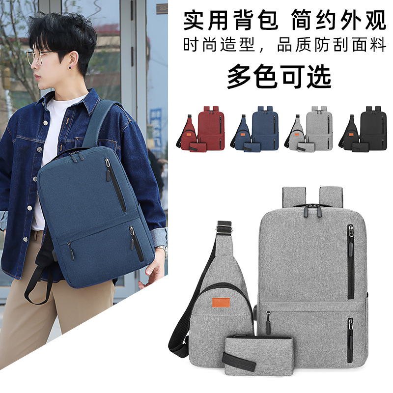Tas dada pria, ransel bisnis kain Oxford pengisi daya USB, tas komputer 16 inci tiga potong, kapasitas besar, baru