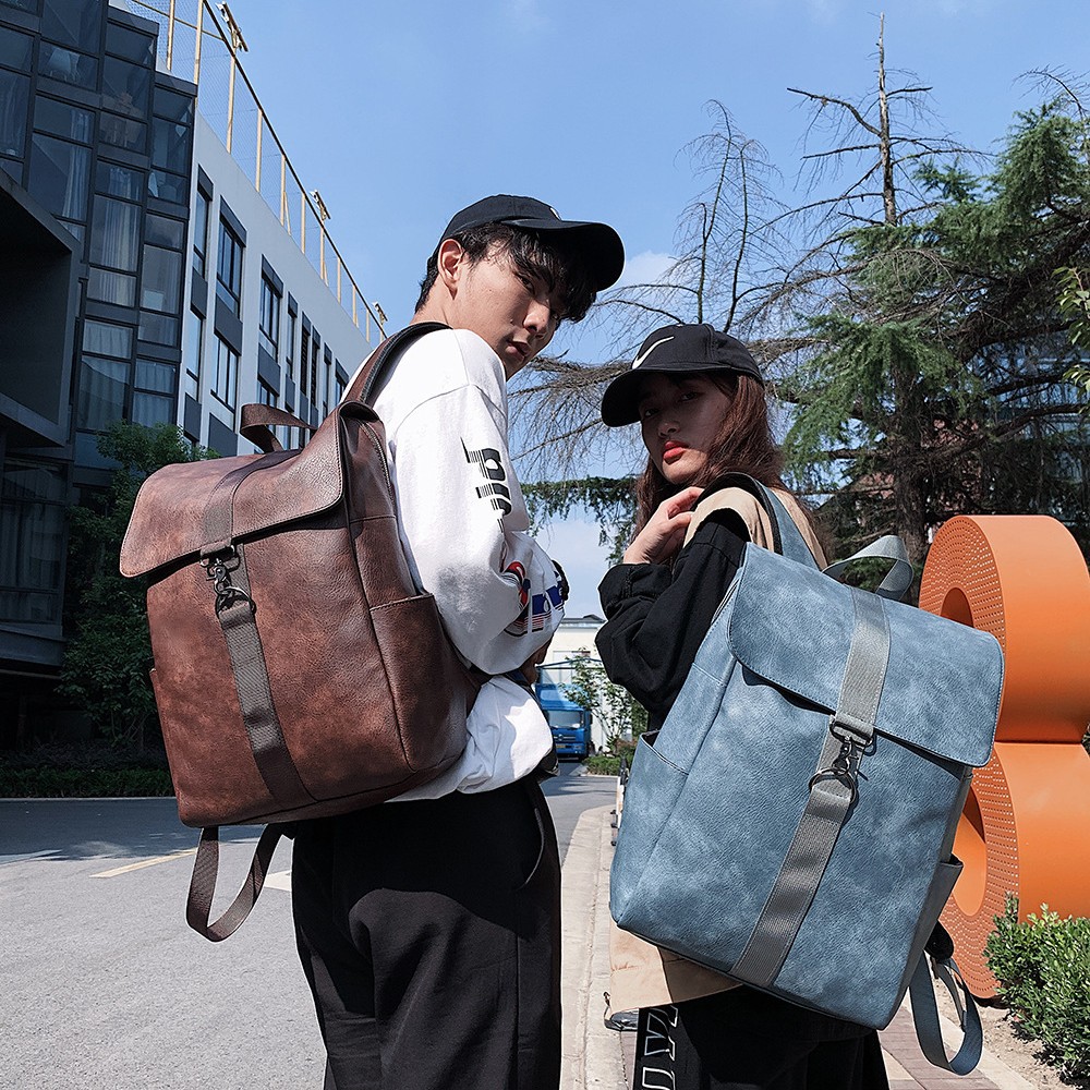 Tas punggung Retro Pria Wanita, ransel kulit PU Murid kuliahan sederhana, tas komputer kampus kapasitas besar untuk berpergian