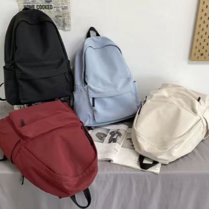 Tas Ransel Nilon Lipit Warna Polos Gaya Jepang Tas Ransel Perjalanan Kasual Ringan Kapasitas Besar Pria Tas Komputer Pelajar Wanita