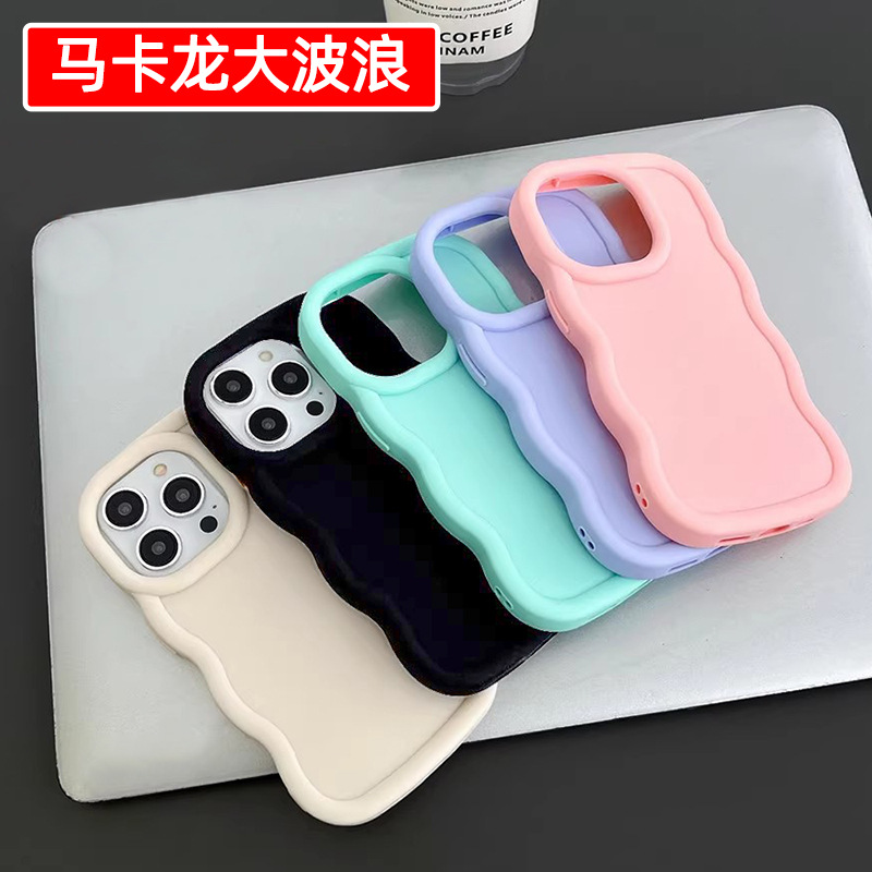 Casing Ponsel untuk iPhone16Pro Macaron XSMax Gelombang Besar 13/14 Casing Pelindung Mata Sarung Lunak TPU
