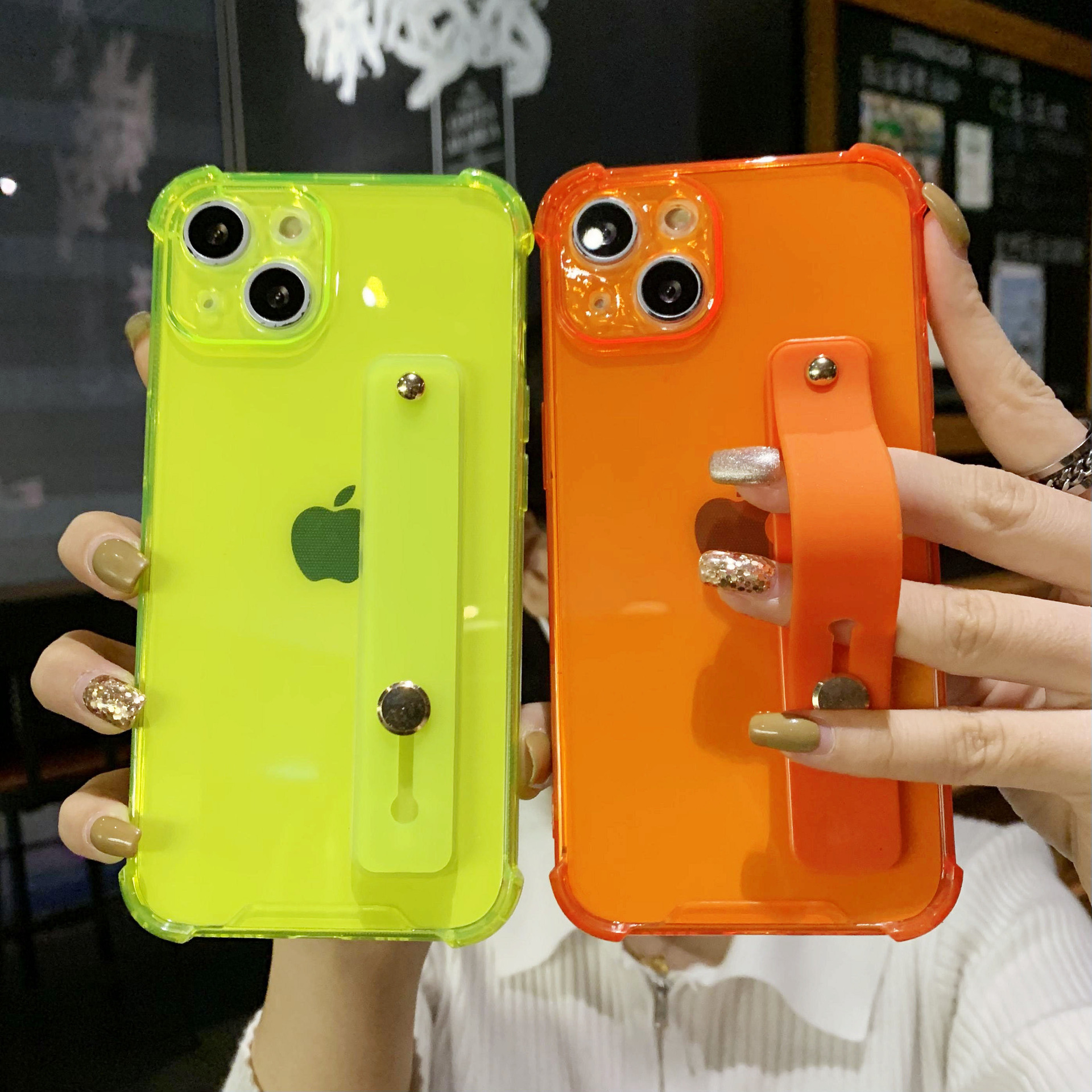Cocok untuk apple 13pro kantong udara empat sudut 12 braket TPU warna neon 14 tali pergelangan tangan iPhone15 cangkang telepon seluler