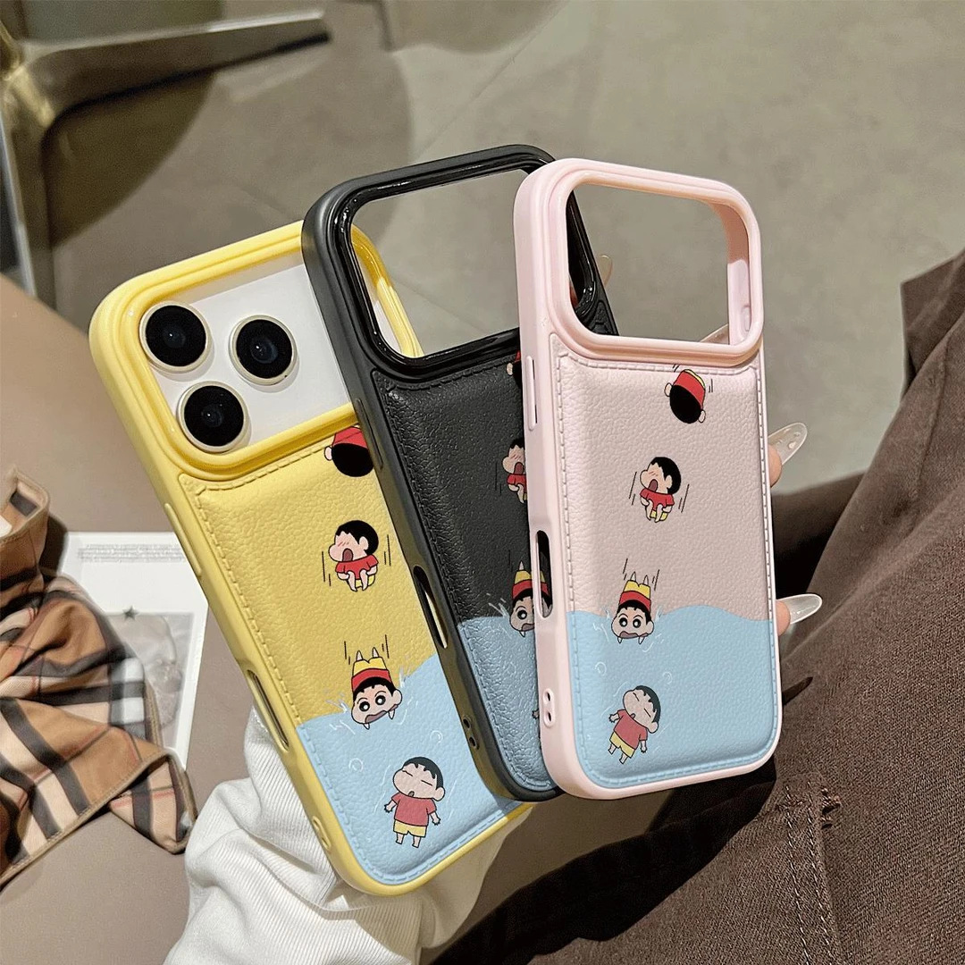 跳水蜡笔小新适用苹果16/17promax手机壳IP15鼓包皮纹14pro可爱13