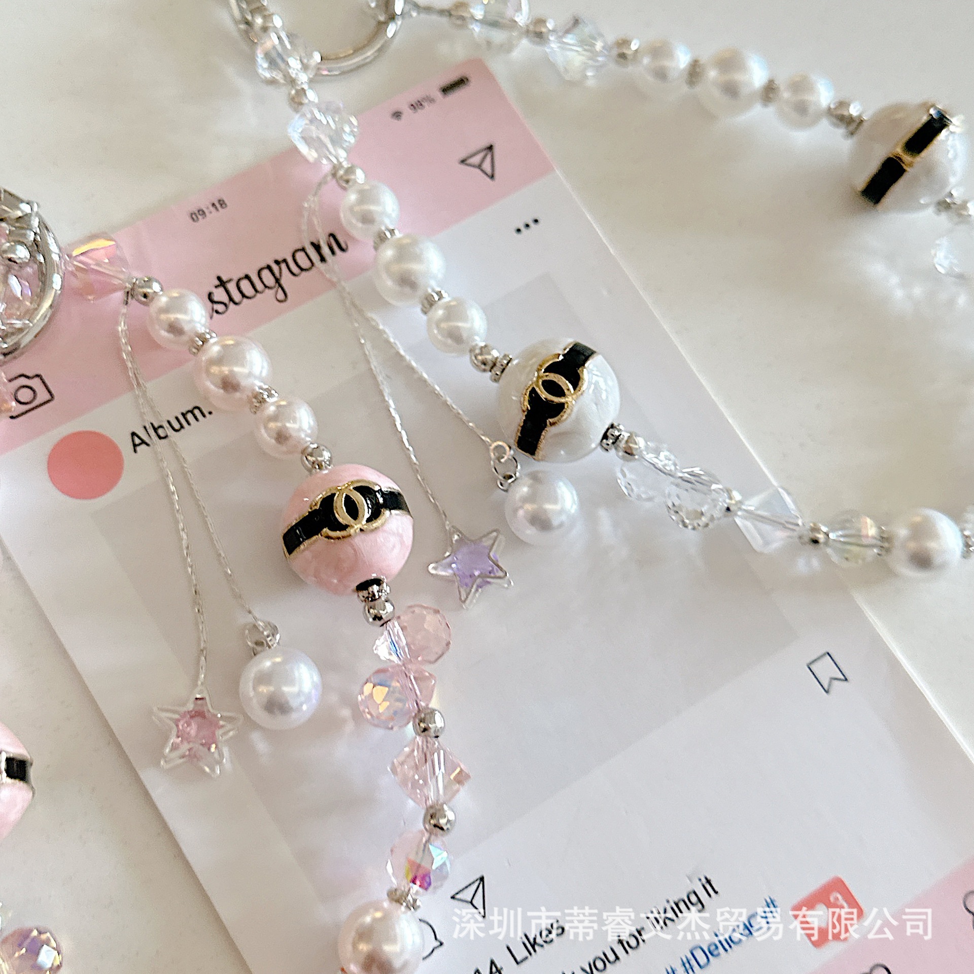 Gantungan Kunci Aksesori Tas Model Mutiara Ganda Gaya Chanel Kerajinan Tangan Kelas Atas Rantai Gantung Manik Anti Hilang Ponsel Model Ledakan
