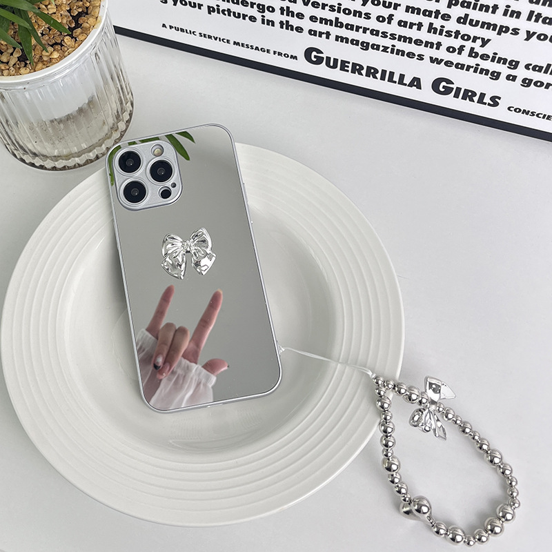 Casing ponsel cermin cinta tiga dimensi untuk Apple 14promax iPhone13 semua riasan busur baru
