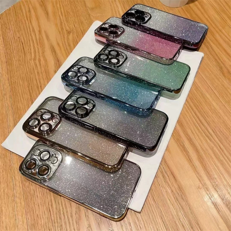 Berlaku untuk Apple 15 cangkang ponsel iphone14pro dilapisi cangkang lunak transparan 13 gradien glitter semua termasuk lubang halus