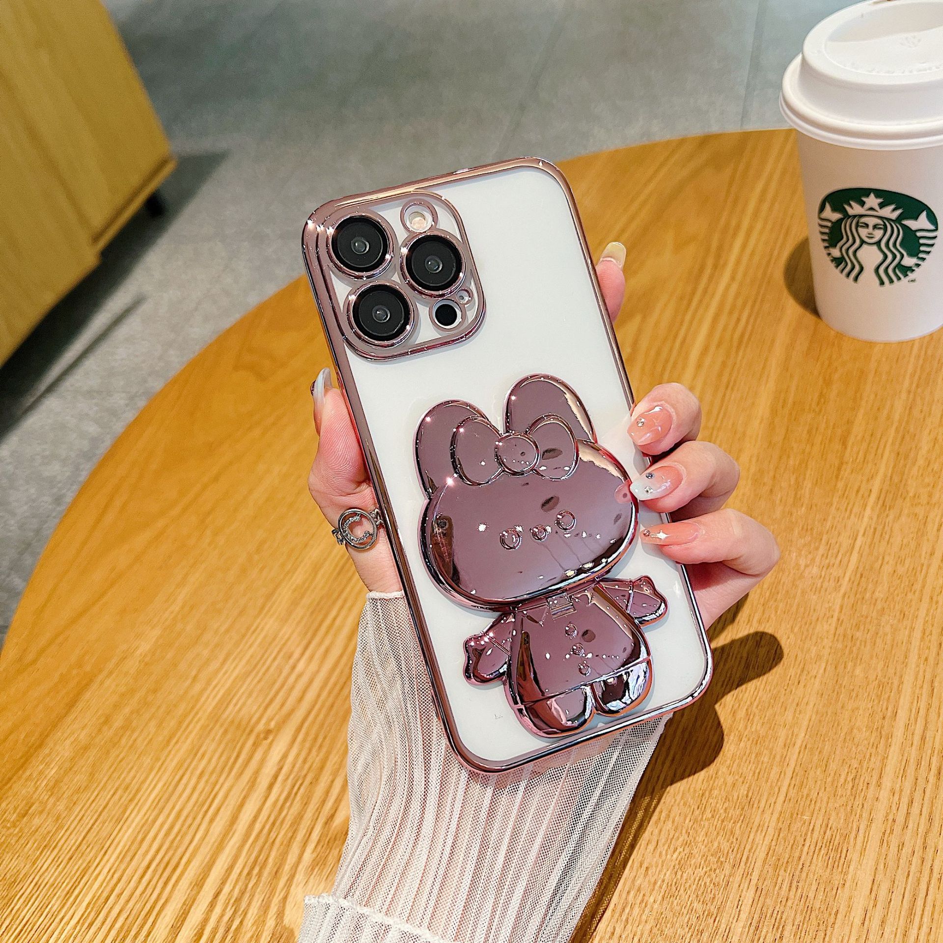Cermin electroplating penuh cermin kelinci pemegang ponsel cermin rias perempuan pemegang cangkang ponsel kuas desktop TikTok penggunaan ganda horisontal dan vertikal