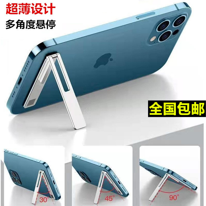 Braket ponsel mini sangat tipis, dudukan telepon seluler satu garis, stiker penopang perekat tidak terlihat portabel belakang lipat braket malas