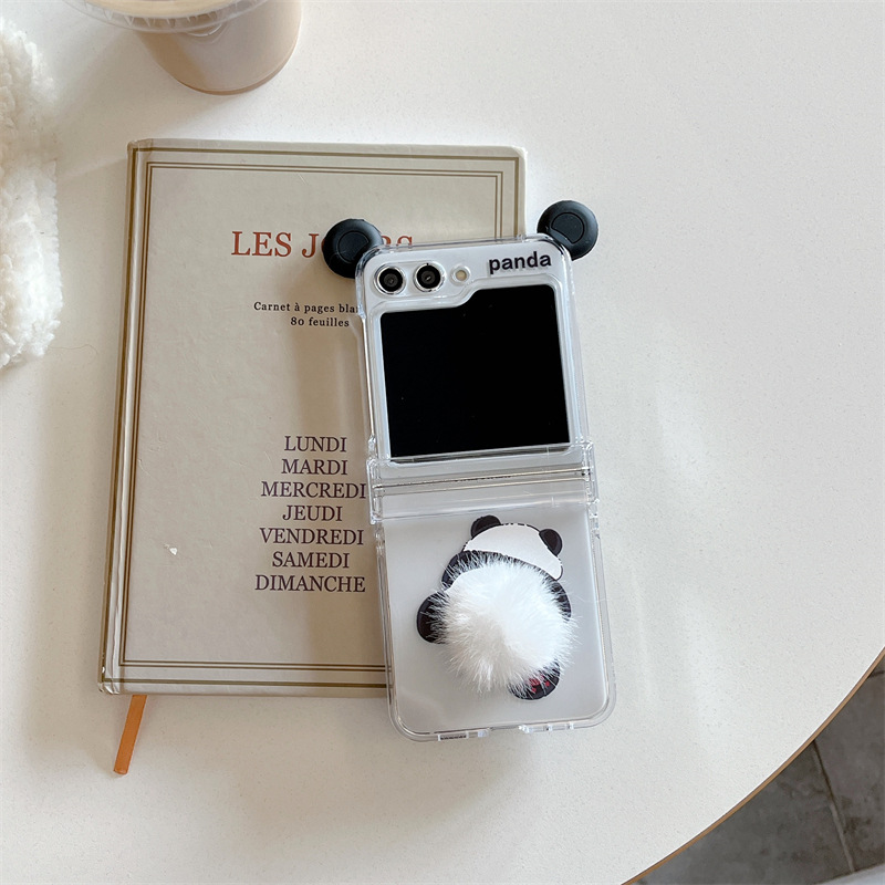 Set casing ponsel lipat kartun panda, tiga potong lucu Galaxy zflip3/4/5 generasi sarung HP lipat
