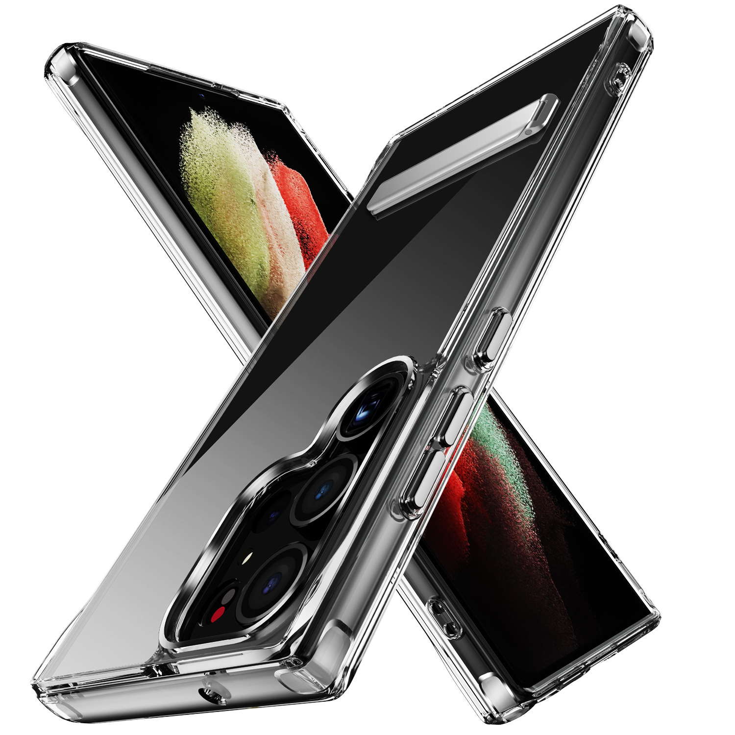 Berlaku untuk S23 PLUS 2.0 bening kristal casing ponsel transparan dengan dudukan TPU akrilik dengan lubang tali tahan jatuh