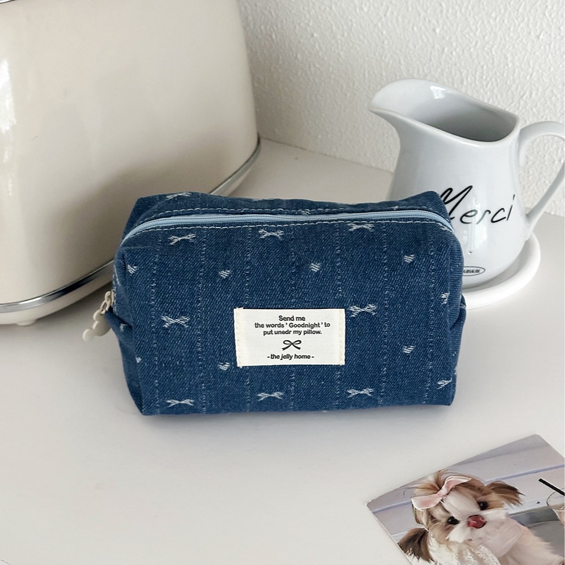 跨境牛仔蝴蝶结八角包韩系ins 风数据线耳机口红护肤品外出收纳包