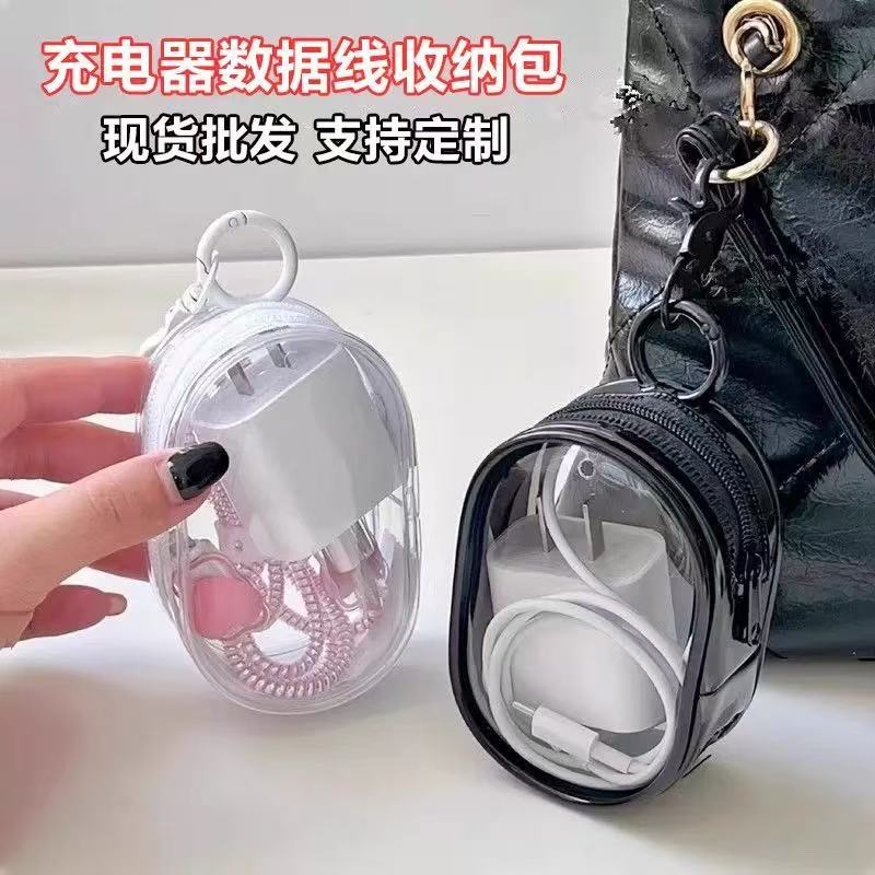 Tas penyimpanan kabel data, kotak penyimpanan anti debu, gantungan kunci portabel, pengisi daya transparan, tas kunci earphone
