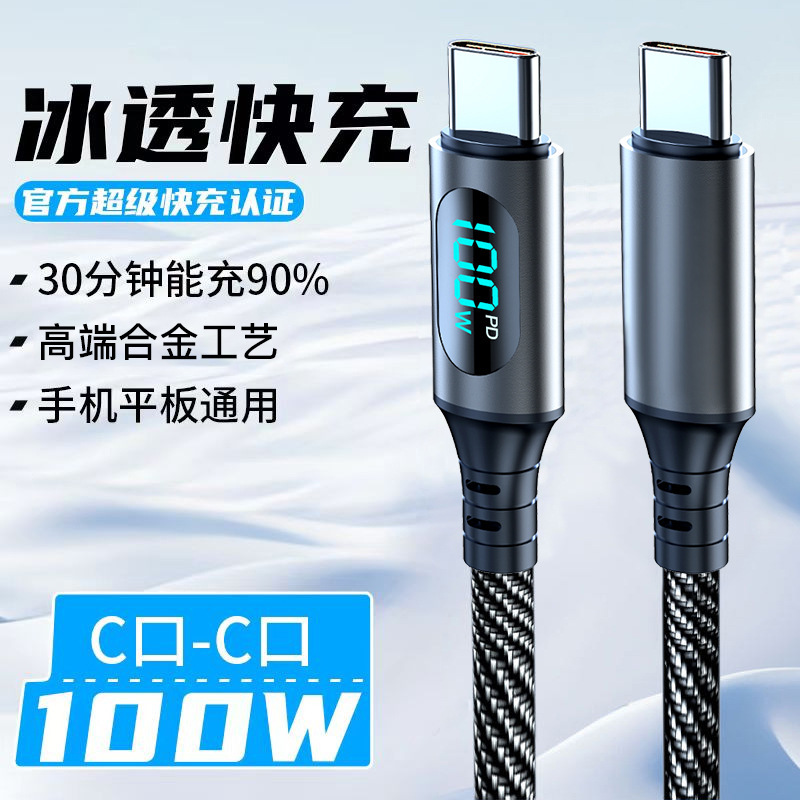Kabel pengisian cepat digital 100W dengan tampilan digital, cocok untuk Huawei, Xiaomi, kabel pengisian Apple, pengisian cepat pintar PD untuk ponsel.