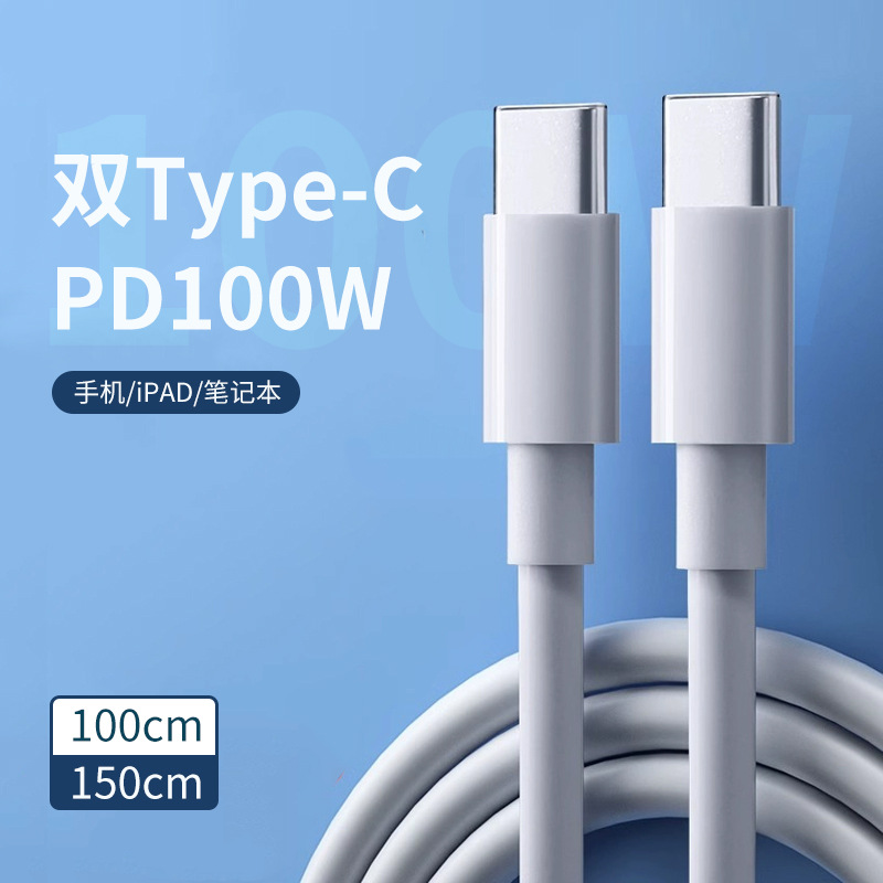 Kabel Data Type-C Kepala Ganda 100W Kabel Pengisi C-C Notebook Huawei Xiaomi Kompatibel dengan iPhone16