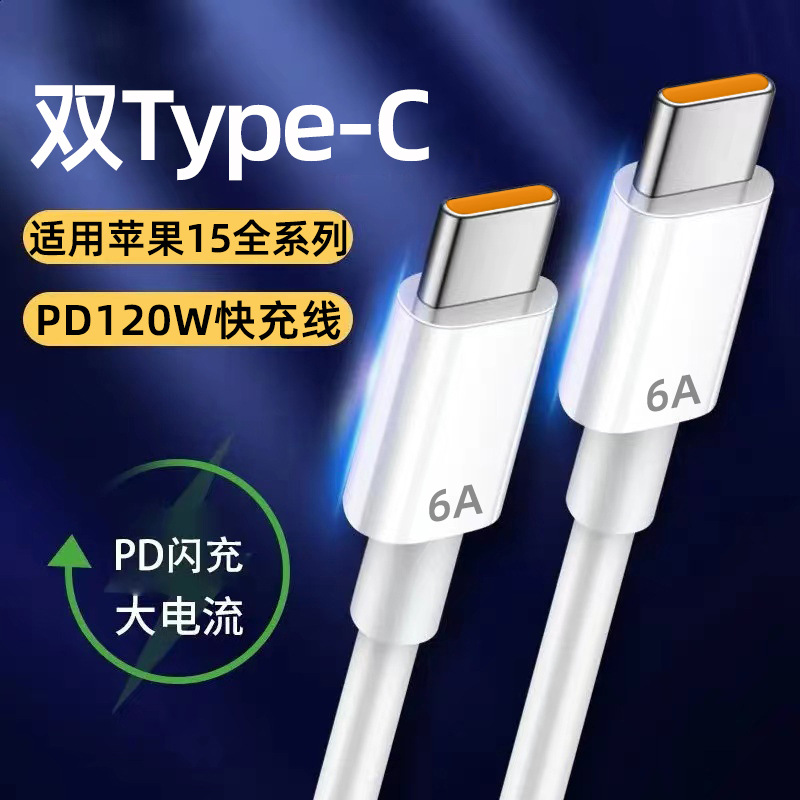 Kabel data typec ganda 120W, kabel pengisian daya cepat untuk Apple iPhone15 kabel pd pengisian daya Cepat kabel c ke c