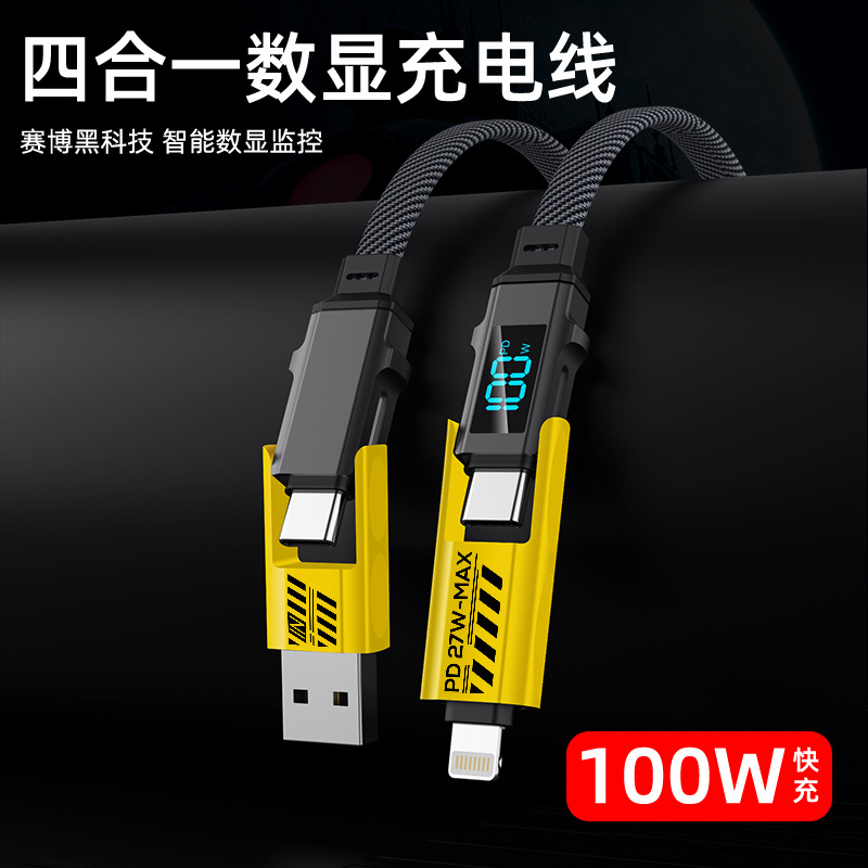 240W100W Layar Digital Cerdas Empat dalam Satu Layar Ponsel Kabel Data Pengisian Cepat Untuk Apple Huawei Xiaomi