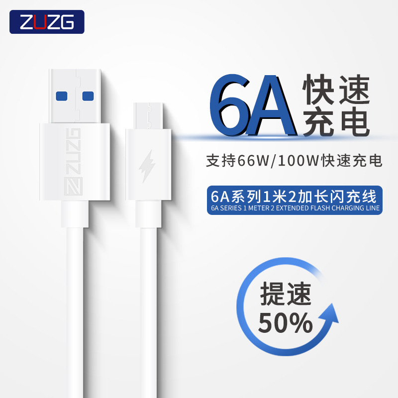 ZUZG 6A kabel data pengisian daya super cepat, kabel data pengisian daya ponsel Huawei Android Apple 1.2 m typec